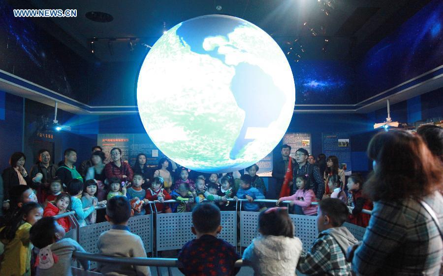 | People visit a meteorological museum in Nanjing, capital of east China's Jiangsu province, March 22, 2015. The World Meteorological Day falls on Monday this year. (Photo: Xinhua/Liu Jianhua) |
