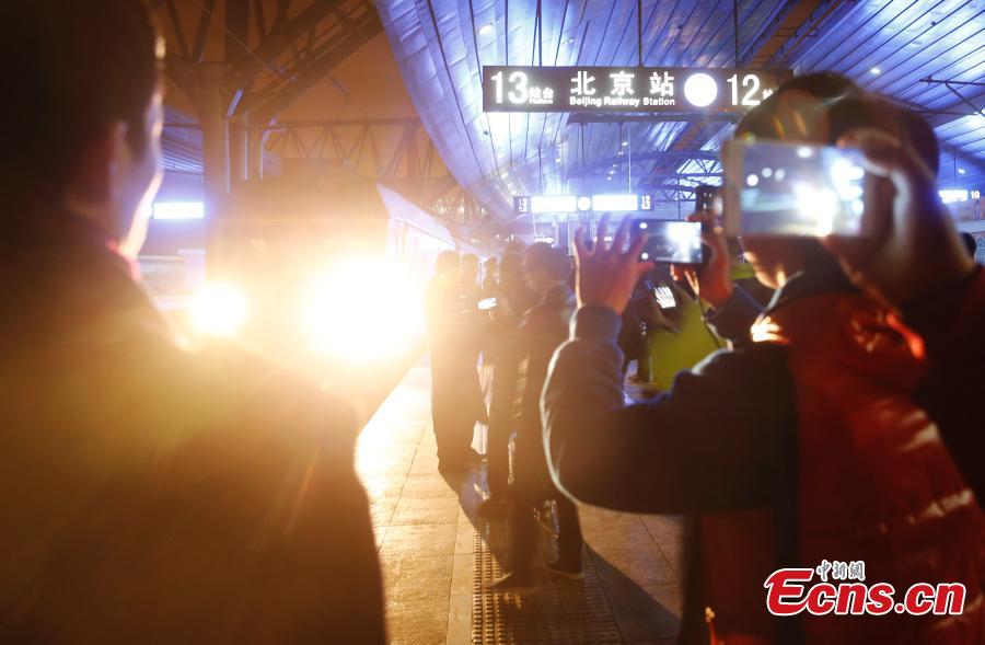 | A passenger takes the picture of the train ticket before taking the underground railway line that connects Beijing’s two major railway stations, March 20, 2015. The K7742 train from Shijiazhuang in Hebei province stops at the two stations before arriving at its destination Chengde, also in Hebei province. It takes 15 minutes for the train to travel the underground section, compared with the usual 40 minutes for passengers to transfer between the two stations using other public transport. Most passengers travelling to China's north and northeast have to depart from Beijing Railway Station, while those heading for the south board their trains at Beijing West Railway Station. The completion of the direct line between the two stations also marks the connection of the Beijing-Guangzhou Railway and the Beijing-Harbin Railway, two major railway lines in China. (Photo: China News Service/Liu Guanguan) |