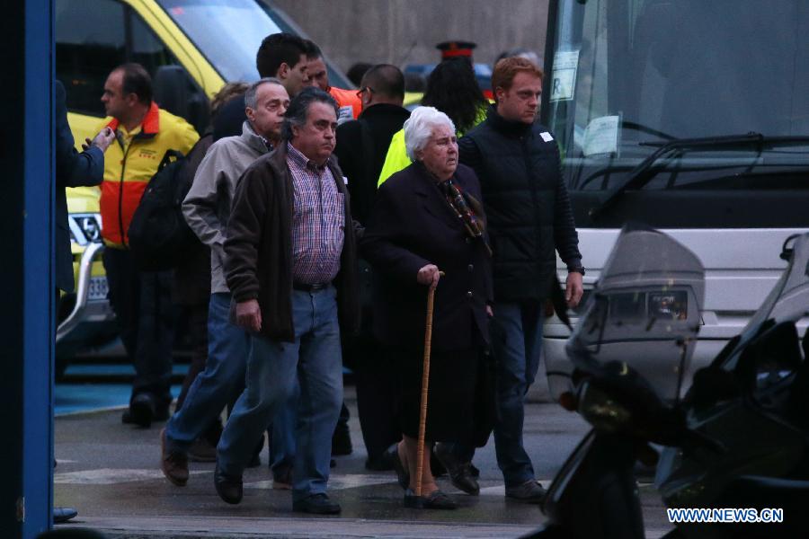 Family members of passengers in the crashed plane of Germanwings leave Barcelona's El Prat airport in Barcelona, Spain, on March 24, 2015. An Airbus A320 of the German low-cost airline Germanwings with 150 people on board crashed on Tuesday in southern France, French authorities confirmed. (Xinhua/Pau Barrena)