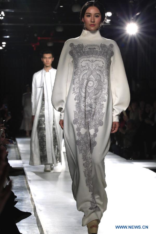 Models present creations of Eve de Cina during the China Fashion Week A/W 2015/2016 in Beijing, capital of China, March 24, 2015. (Xinhua/Li Mingfang)