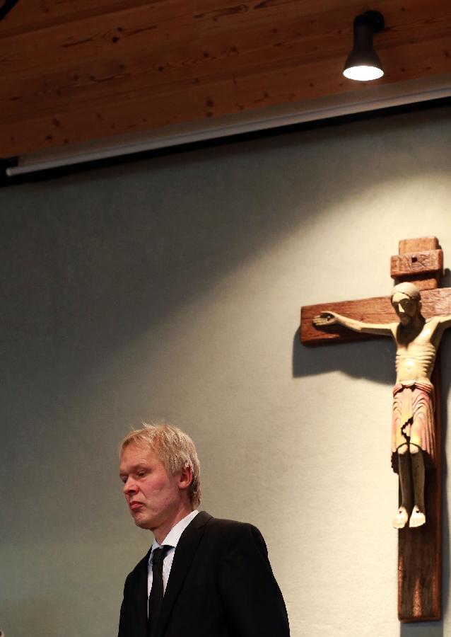 Ulrich Wessel, principal of Joseph-Koenig High School, meets media in Haltern, western Germany, March 25, 2015. Sixteen school children and two teachers were among the 150 victims that died in the Germanwings plane crash in the French alps on the way from Barcelona to Duesseldorf. (Xinhua/Luo Huanhuan)