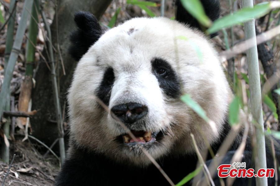 A giant panda eats bamboo at the Changqing Nature Reserve. A report of the fourth panda survey in Shaanxi province, released on March 25, shows that there are about 345 wild giant pandas living in the Qinling Mountains area, an increase of 26.4 percent than the third survey. Most pandas live on the southern slope of the middle section of Qinling Mountains. (Photo provided to China News Service)