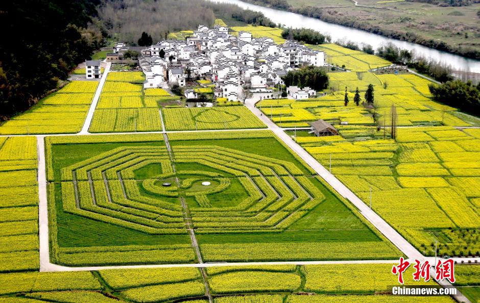 A giant Taiji diagram appears in the rape flower filed in Mount Qiyun in east China's Anhui province on March 24, 2015. (CNS/Shi Guangde)