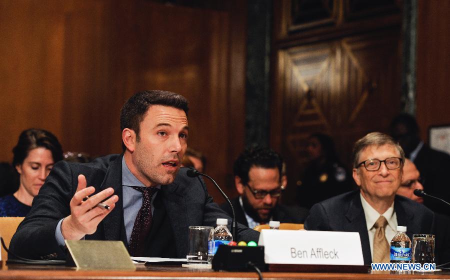Actor, filmmaker and founder of Eastern Congo Initiative Ben Affleck testifies before state, foreign operations subcommittee of senate appropriations committee in the hearing on Diplomacy, Development, and National Security, on Capitol Hill in Washington D.C., capital of the United States, March 26, 2015.(Xinhua/Bao Dandan)