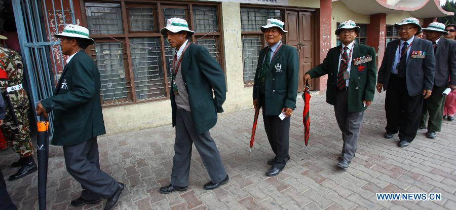 | Retired British Gurkhas participate in the commemoration of 200 years of service in the British Army in Kathmandu, Nepal, March 26, 2015. The United Kingdom's Brigade of Gurkhas commemorates 200 years of outstanding service and loyalty to the crown in 2015. (Xinhua/Sunil Sharma) |