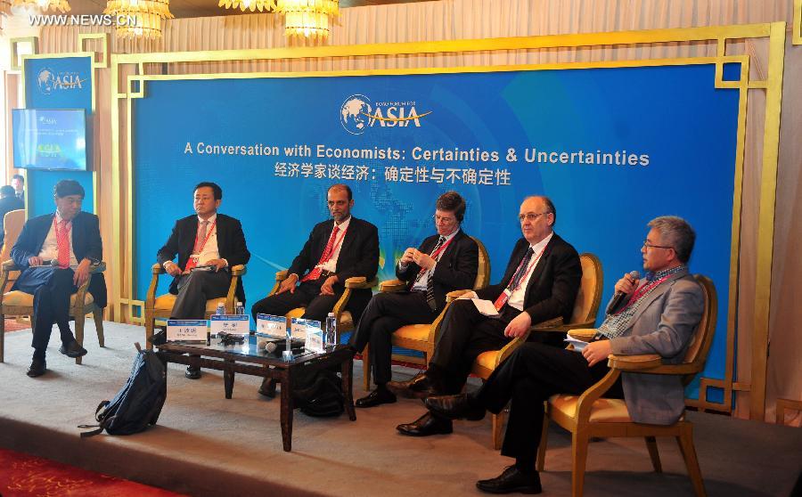 Photo taken on March 27, 2015 shows the luncheon with the theme of "A Conversation with Economists: Certainties & Uncertainties" during the 2015 Boao Forum for Asia (BFA) in Boao, south China's Hainan Province. (Xinhua/Yang Guanyu)