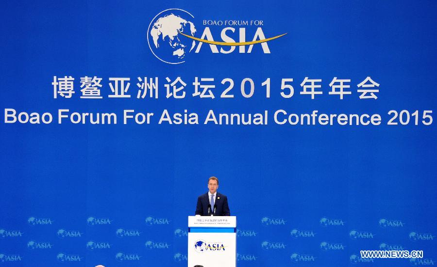 Russian First Deputy Prime Minister Igor Shuvalov addresses the opening ceremony of the 2015 annual conference of the Boao Forum for Asia (BFA) in Boao, south China's Hainan Province, March 28, 2015. Shuvalov said Saturday Russia decided to join the Asian Infrastructure Investment Bank (AIIB). (Xinhua/Zhao Yingquan)
