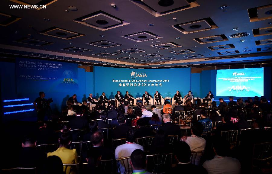 Participants attend a sub-forum with the theme of "Asian Infrastructure Investment Bank (AIIB) and the New Development Bank" at the 2015 Boao Forum for Asia (BFA) in Boao, south China's Hainan Province, March 28, 2015. (Xinhua/Guo Cheng)
