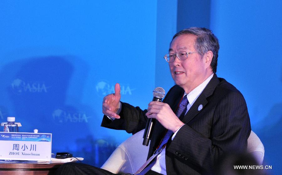 Governor of People's Bank of China Zhou Xiaochuan speaks at the sub-forum with the theme of "What's the Next Move on Unconventional Monetary Policies?" during the 2015 Boao Forum for Asia (BFA) in Boao, south China's Hainan Province, March 29, 2015. (Xinhua/Yang Guanyu)