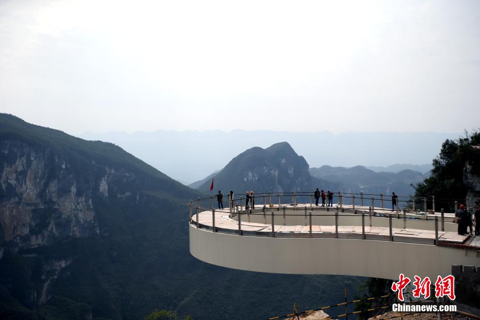 The world's longest glass cantilever bridge in Yunyang county, Chongqing, will be opened to tourists on May 1. The "Cloud bridge" is built on top of the cliffs 1,123 meters above sea level. The bridge is about 3.4 meters wide and 50 meters long, with a shape of flower. When one stands on it, he will feel totally "suspended" in the air without any line in sight. (Photo/CNS)
