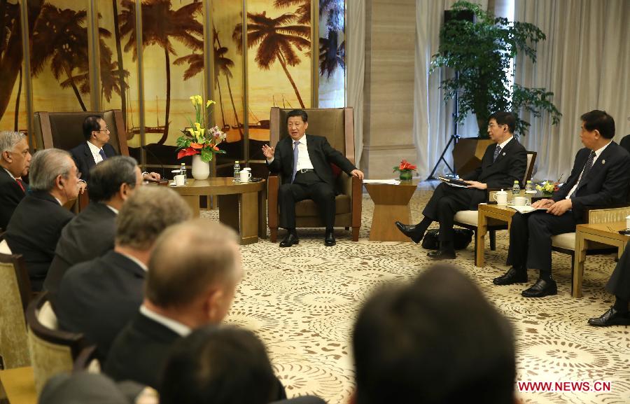 | Chinese President Xi Jinping(C) meets with members of the Boao Forum for Asia board of directors in Boao, south China's Hainan Province, March 29, 2015. (Xinhua/Ma Zhancheng) |