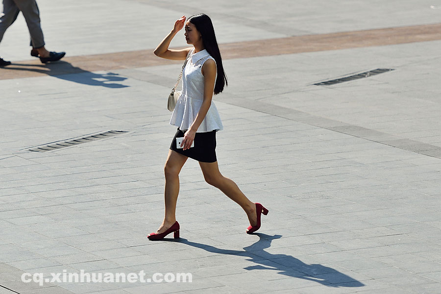 A great number of women wore summer clothes on Wednesday in Chongqing, southwest China  as the maximum temperature went up to 35 degrees Celsius.