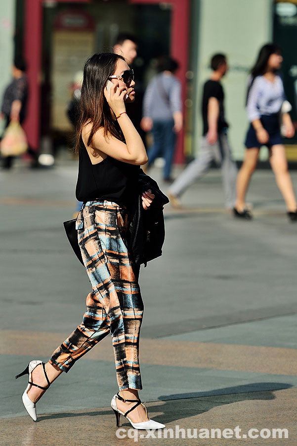 A great number of women wore summer clothes on Wednesday in Chongqing, southwest China  as the maximum temperature went up to 35 degrees Celsius.