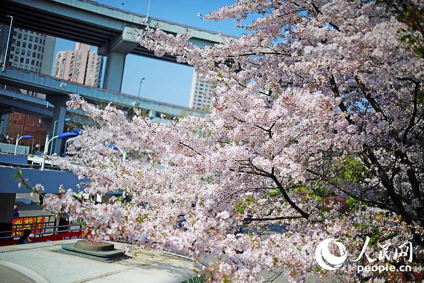 Recently, photos of the Puxi public transit hub in Shanghai have gone viral on line for its blooming cherry blossoms. Netizens regard it as "the most beautiful bus station" in Shanghai. Dozens of cherry trees there have reached peak bloom, attracting citizens to enjoy the natural beauty and record the amazing scenery. (People.cn/Wang Chu)