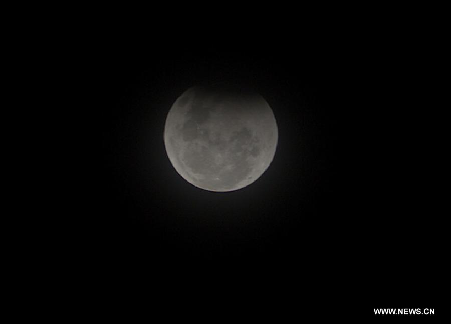 Lunar eclipse is observed in the sky of Jakarta, Indonesia, April 4, 2015. (Xinhua/Zulkarnain)