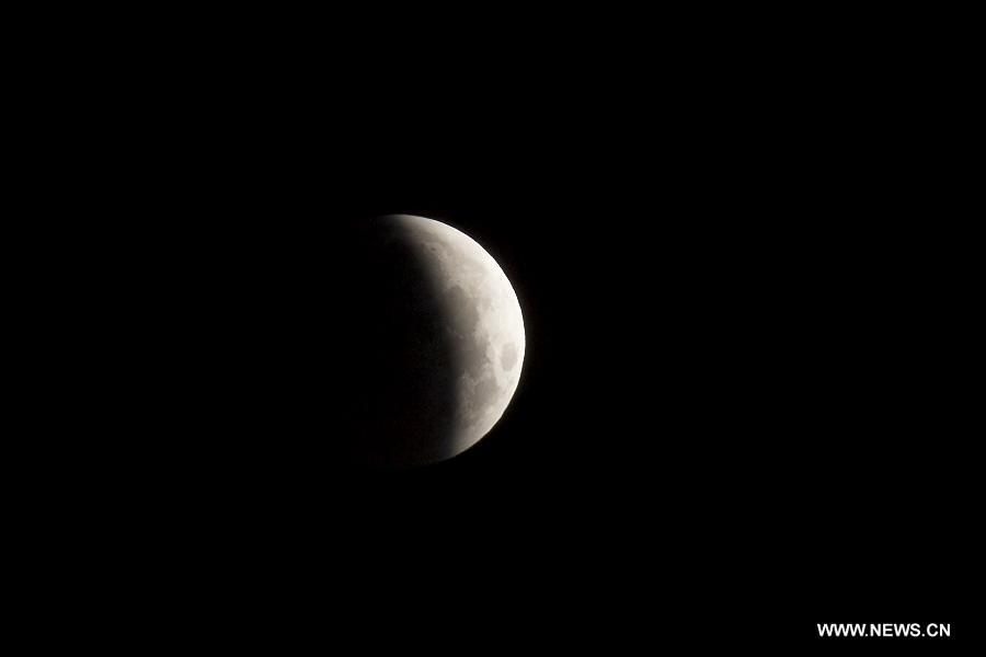 Photo taken on April 4, 2015 shows a total lunar eclipse observed in Tijuana, Baja California, in the northwest of Mexico. (Xinhua/Guillermo Arias)