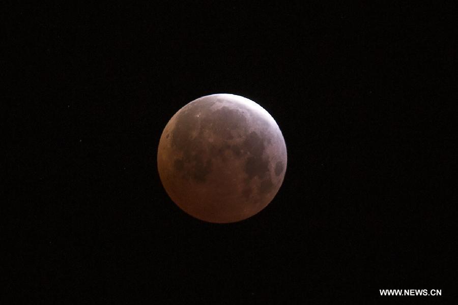 Photo taken on April 4, 2015 shows a total lunar eclipse observed in Tijuana, Baja California, in the northwest of Mexico. (Xinhua/Guillermo Arias)