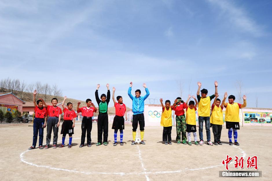| Despite the harsh conditions, the students play football happily in the rough playground with swirling dust. (CNS/Yang Yanmin) |