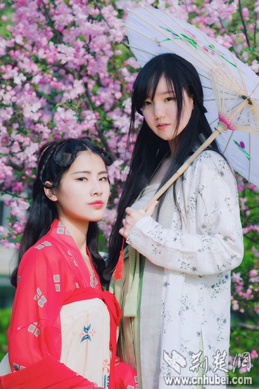 On April 2, 2015, dressing up with traditional Han clothing, four campus belles of Wuhan University of Science and Technology (WUST) went for a spring outing and posed for photos. Their photos have attracted much attention from university students and have become an internet hit. (Photo source: cnhubei.com)