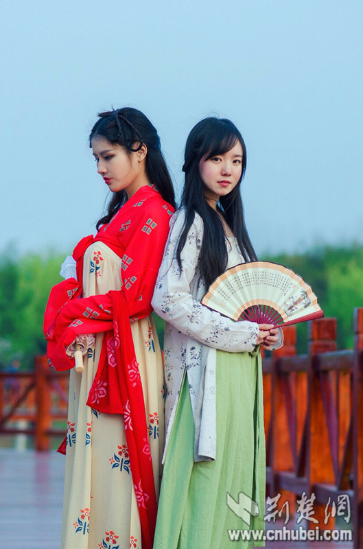 On April 2, 2015, dressing up with traditional Han clothing, four campus belles of Wuhan University of Science and Technology (WUST) went for a spring outing and posed for photos. Their photos have attracted much attention from university students and have become an internet hit. (Photo source: cnhubei.com)