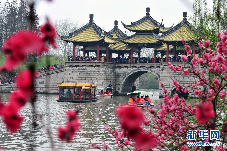 On April 5, 2015, people enjoy themselves in Wuting Bridge of Yangzhou city, east China's Jiangsu province. (Xinhua/ Liu Jiangrui)