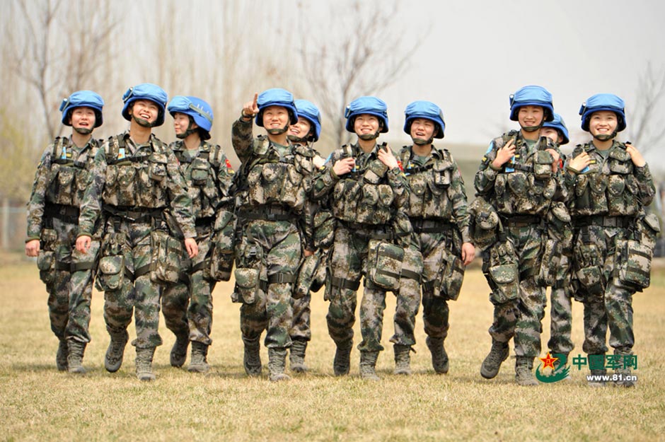 The follow-up unit of 130 soldiers of China's first infantry battalion for international peacekeeping mission left for South Sudan on April 7, 2015. Below is a group of photos of the female peacekeepers in this unit. (Photo/81.cn)