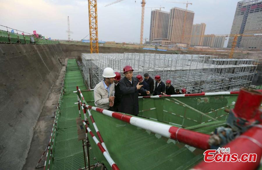 Premier Li Keqiang (R) talks with a worker at the construction site of a transportation hub in Changchun, the capital of Northeast China’s Jilin province, April 9, 2015. Li emphasized the important role of investment in driving up the economy. (Photo: China News Service/Liu Zhen)