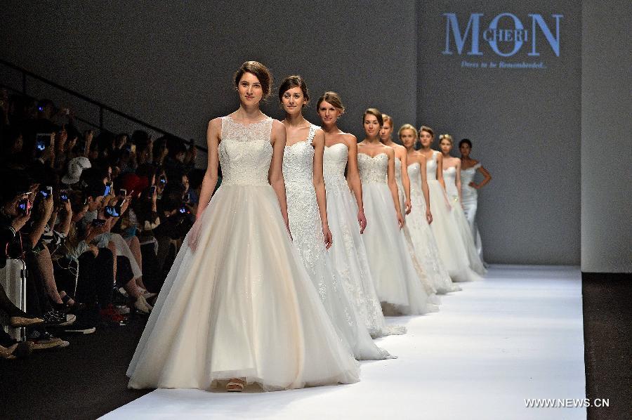 Models present creations of Mon Cheri during the 2015 Shanghai Fashion Week Autumn/Winter in east China's Shanghai, April 12, 2015. (Xinhua/Guo Changyao)