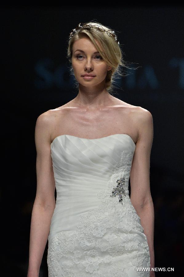 A model presents a creation of Mon Cheri during the 2015 Shanghai Fashion Week Autumn/Winter in east China's Shanghai, April 12, 2015. (Xinhua/Guo Changyao)