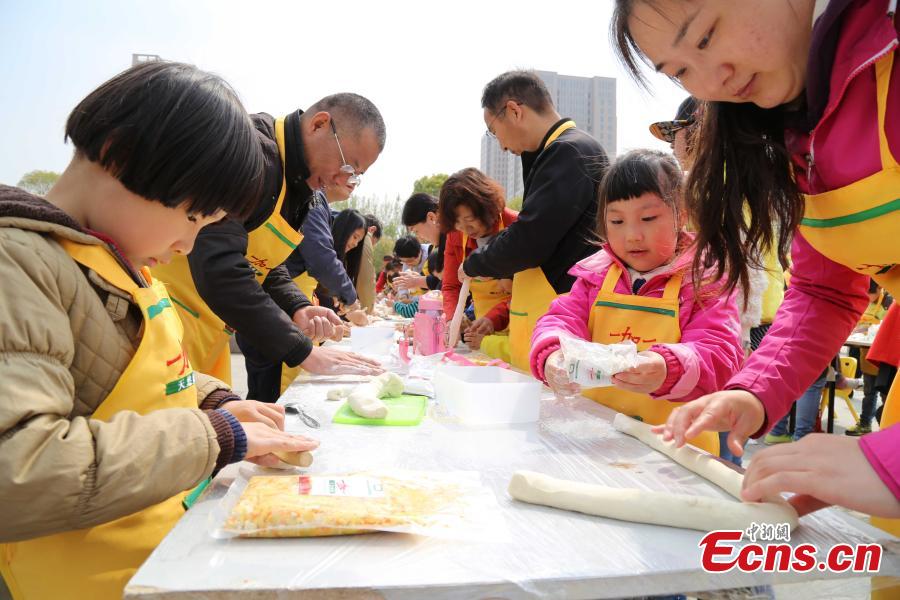A total of 17,000 people simultaneously make dumplings while watching a cooking class video in 18 places in North China’s Henan province, April 12, 2015. With 4613 participants passing the challenge in the 50-minute long class, it set a Guinness World Record for the largest cooking class. The previous record involved 3,687 people making dumplings in Qingdao, Shandong province, February 14, 2015. (Photo: China News Service/Wang Zhongju)