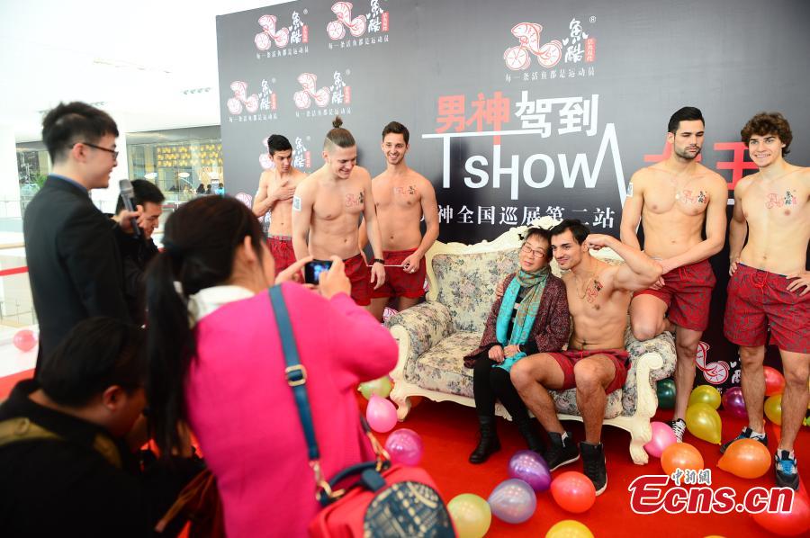 | Topless male models serve customers at a restaurant in Tianjin municipality, April 11, 2015. The event was held to attract female customers and make them feel served like a queen, according to the organizer. (Photo: China News Service/Zhang Daozheng) |