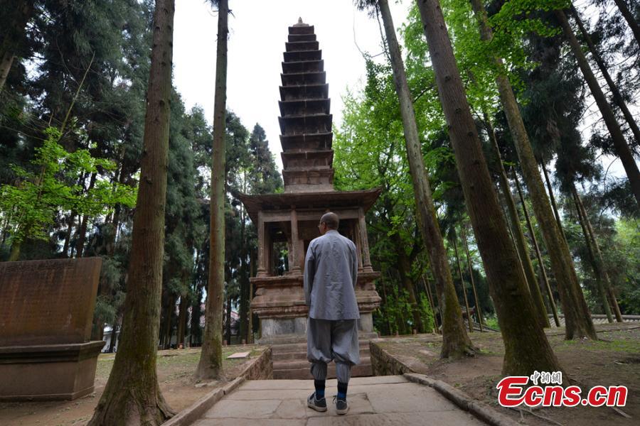 A group of investigators, including Buddhists and archaeologists, inspect a stone pagoda in Qionglai city, Southwest China’s Sichuan province, April 13, 2015. Sources say sarira of Sakyamuni, relics of the Buddha after cremation, is stored in the 800-year-old building. (Photo: China News Service/Zhang Lang)