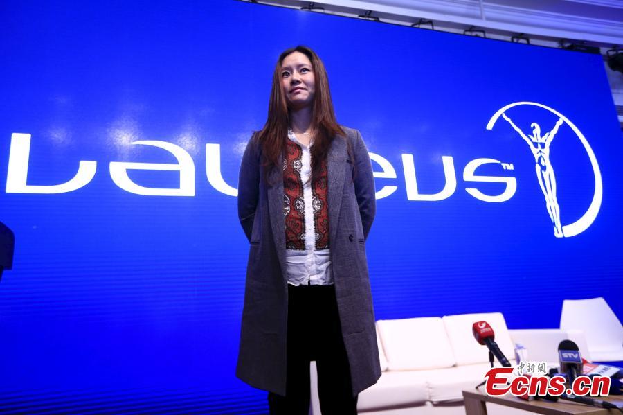 Retired two-time Grand Slam champion Li Na attends a press conference for the Laureus World Sports Awards 2015 in Shanghai, April 14, 2015. Li Na, who is pregnant, has been nominated for the awards, the second time after she won the 2011 French Open. She will be up against Serena Williams in a six-woman field for sportswoman of the year in the Laureus World Sports Awards. The winner will be announced at the awards ceremony in Shanghai on April 15. (Photo/Agencies)