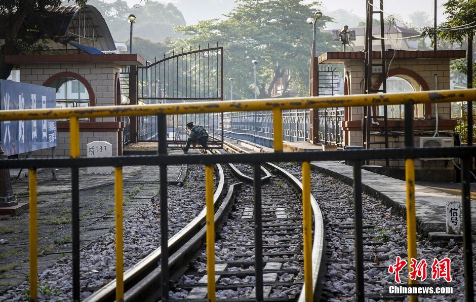One soldier opens the national gate, welcoming a Vietnamese train. (CNS/Zhang Hao)