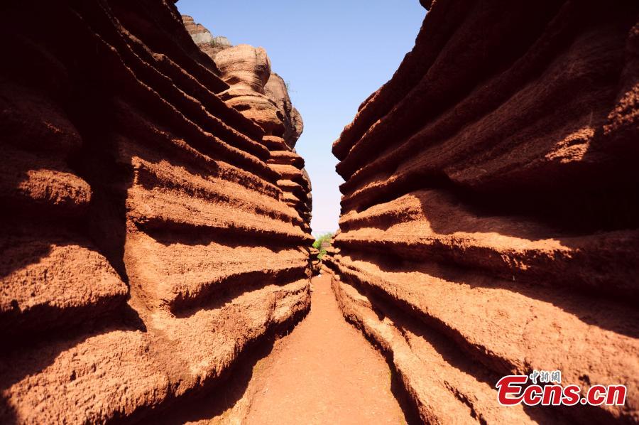 A view of Karst landform composed of red mudstone, valleys, and cliffs in Youyang county, Southwest China’s Chongqing municipality. The area is under development to become a tourist attraction. (Photo: China News Service/Chen Bisheng)
