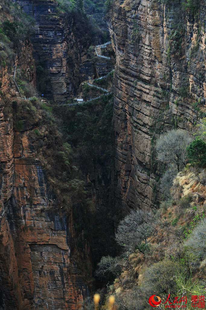 Jiyi Canyon, a natural wonder, lies high above the turbulent Daliang River in Wuding county, southwest China's Yunnan province. It is 12 kilometers long, 200 meters at its widest, 6 meters at its narrowest and 300 meters at its deepest point. (Photo/People.cn)