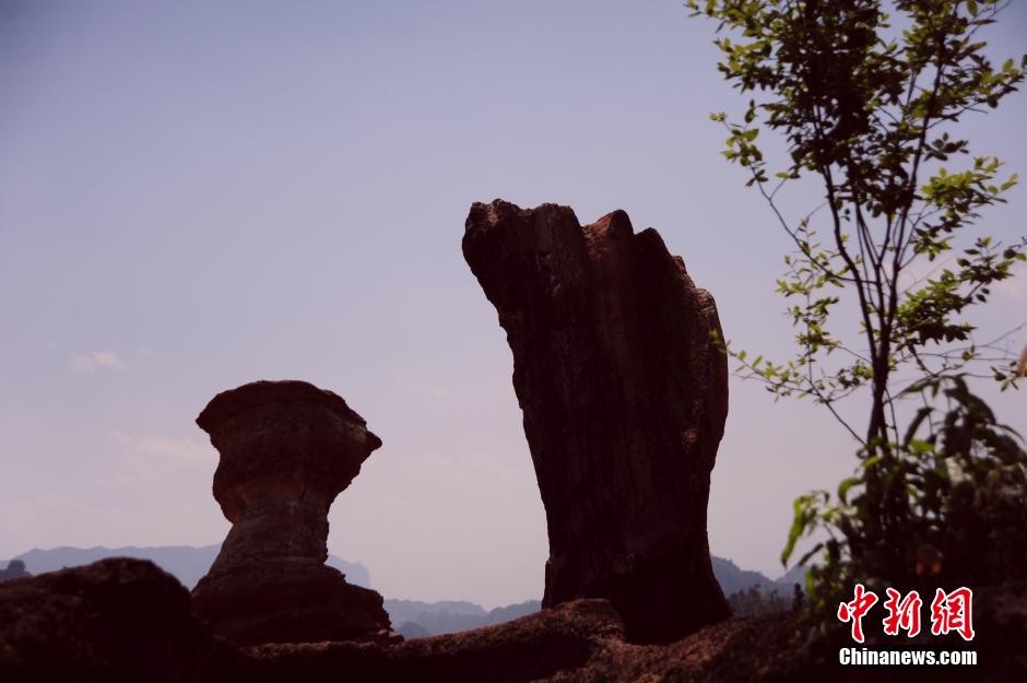 A large area of red rock forest is found in Baizhu village, 50 kilometers away from Youyang county, southwest China’s Chongqing city. Relevant authorities have taken measures to protect the forest. So far, nearly 66 hectares of red rock forest have been excavated, attracting many tourists to the site. (Chinanews/Cheng Bisheng)