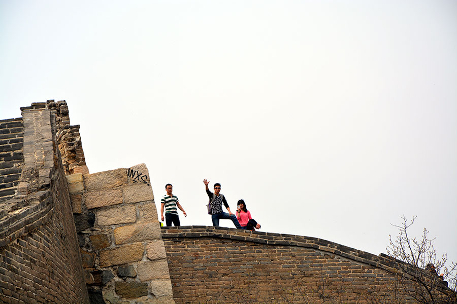 People take photos when they climb the Huanghuacheng Water Great Wall. (People's Daily Online/Wang Ao)