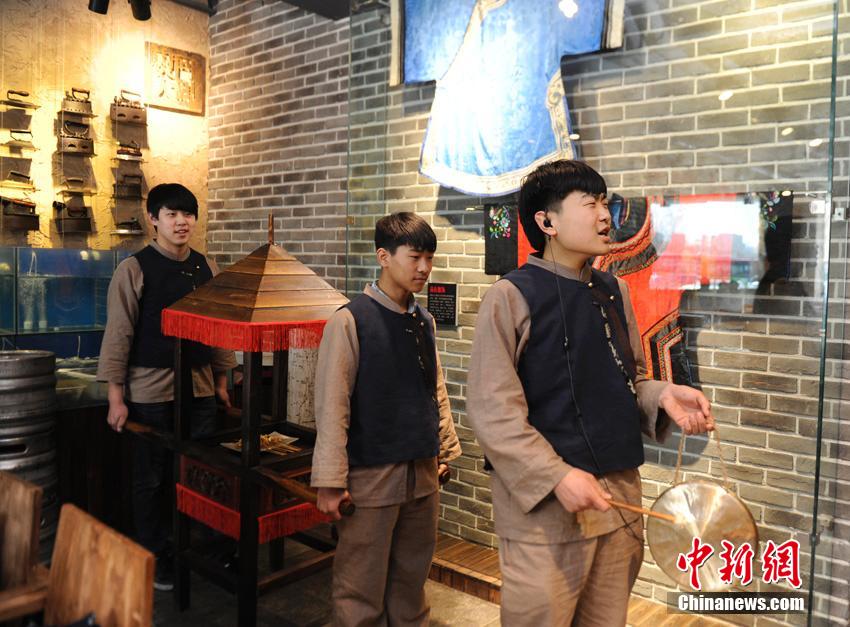 | A museum-themed restaurant opens in Changchun, capital of northeast China's Jilin province, April 18, 2015. The restaurant exhibits clothes and handicrafts with features of northeast Chinese history. (CNS/Zhang Yao) |