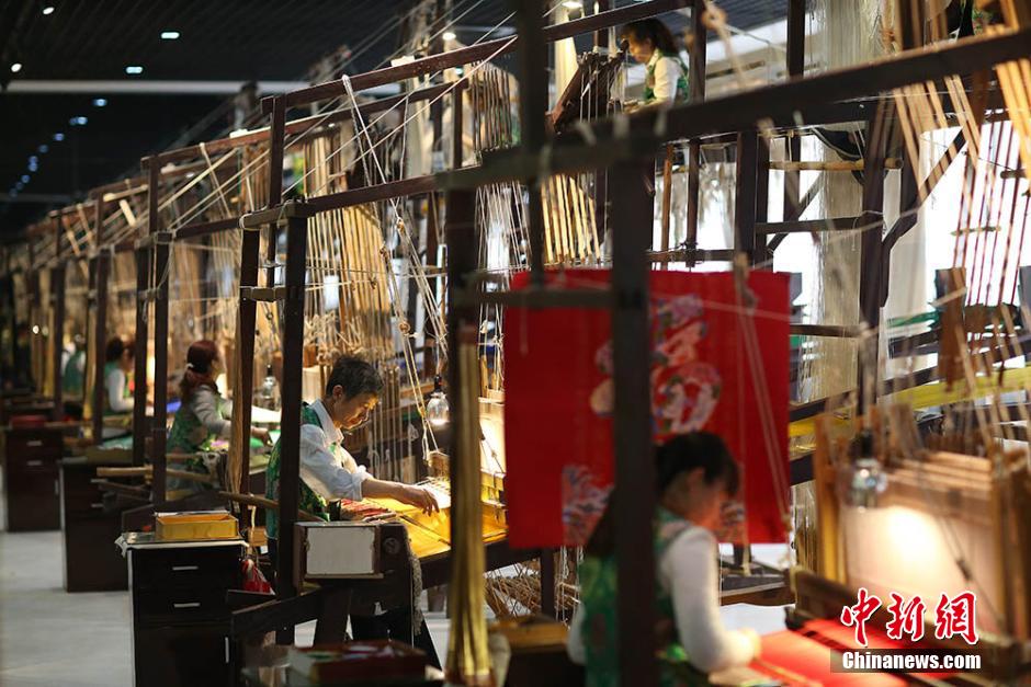 After a two-month renovation, Nanjing Brocade Museum reopens to the public on April 19, 2015. As an intangible cultural heritage of humanity, Nanjing brocade has a history of 1600 years and is one of the four famous brocades of China. The reopened museum puts much emphasis on introducing the production procedure of Nanjing brocade and displaying the choicest goods of China’s silk brocades. (Chinanews/Yang Bo)