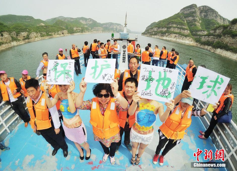 On the Earth Day on Wednesday, the beautiful university students put on body paintings to call on the people to protect the earth's resources in Jiyuan, central China's Henan province. They drew crowds and elicited positive responses.(Chinanews.com/Wang Zhongju)