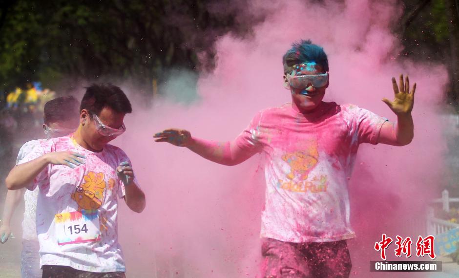Thousands of young people participate in the five-kilometer 'Color Run' at Xuanwu Lake Park in Nanjing on April 22, 2015. (CNS/Yang Bo)