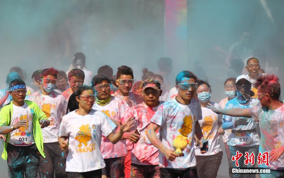 Thousands of young people participate in the five-kilometer 'Color Run' at Xuanwu Lake Park in Nanjing on April 22, 2015. (CNS/Yang Bo)