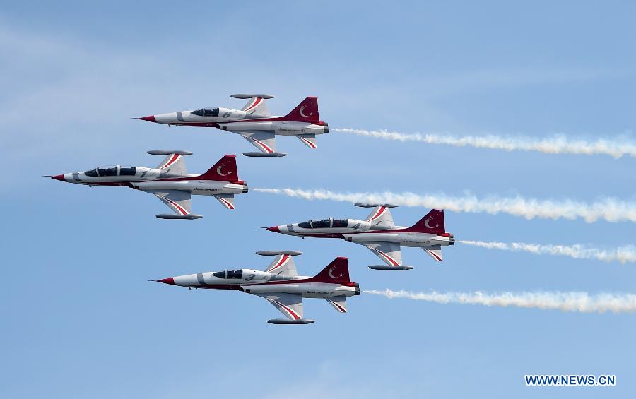 Turkish soldiers shoot during a ceremony marking the historic Gallipoli Battle in Canakkale, Turkey, April 24, 2015. Turkish President Recep Tayyip Erdogan and British Prince of Wales Charles Friday joined more than 18,000 people to mark 100th anniversary of the Gallipoli Battle. (Xinhua/He Canling)