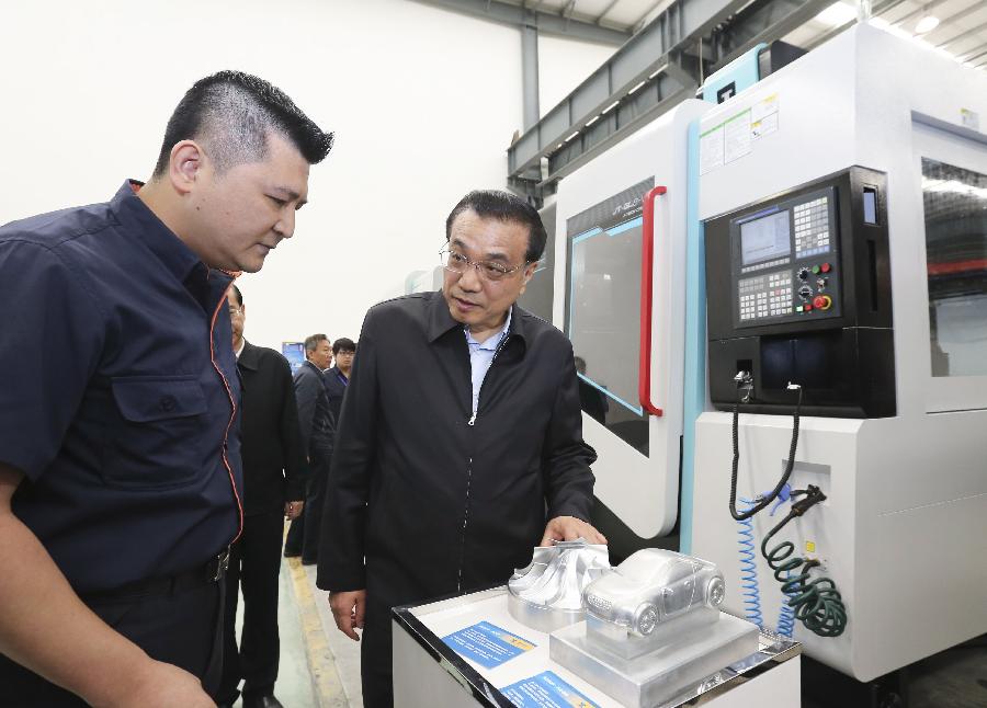 | Chinese Premier Li Keqiang visits J-Tech CNC Machinery Co., Ltd. in Quanzhou, southeast China's Fujian Province, April 23, 2015. Li visited cities of Xiamen, Quanzhou and Fuzhou of Fujian province from April 22 to 24. (Xinhua/Ding Lin) |