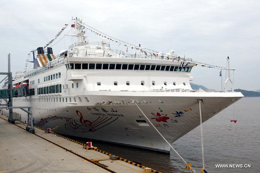 Passenger liner Chinese Taishan docks at a port in Zhoushan, east China's Zhejiang Province, April 24, 2015. A new route linking Zhoushan and southeast China's Taiwan was officially launched on Friday, as nearly 900 passengers started their journey to Taiwan from Zhoushan by the passenger liner named as Chinese Taishan. (Xinhua/Shen Jizhong)