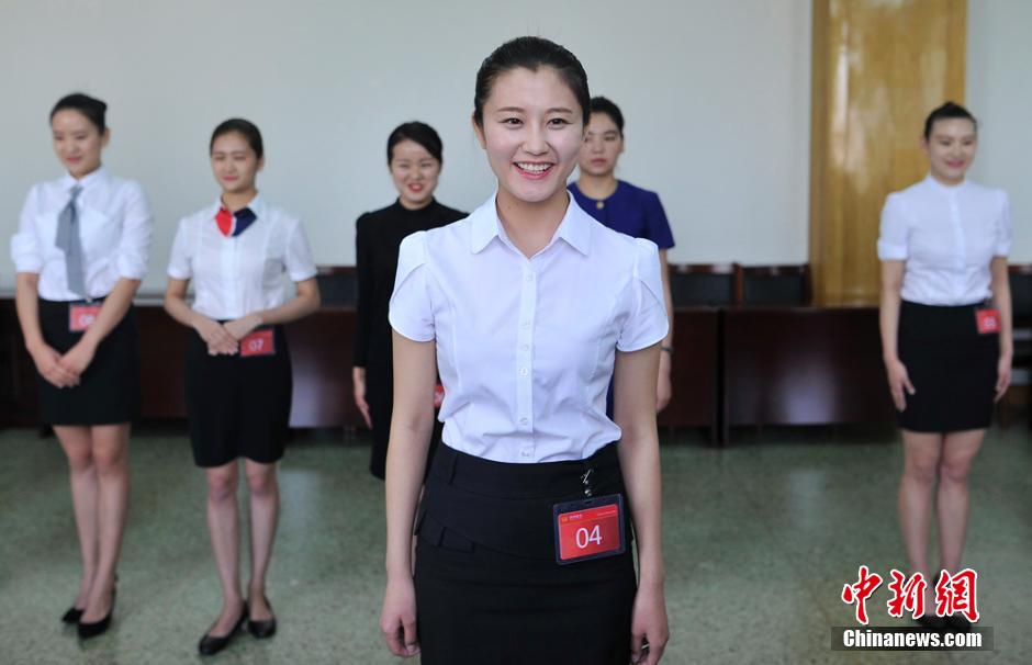 On April 23, 2015, many female students attend the interview for flight attendants by Hainan Airline in Shanxi University. (Chinanews/Wei Liang)