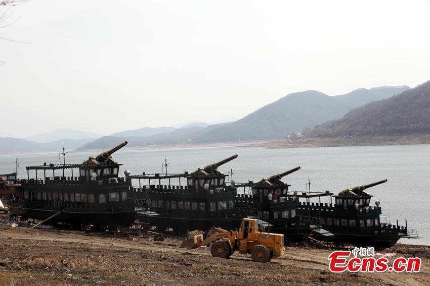 A replica of a warship from the reign of Emperor Kangxi in the Qing Dynasty (1644-1911) is under construction at Songhua Lake in Jilin city, Northeast China’s Jilin province. Six warships have been launched, with more to be completed. The city has been a base for shipbuilding since as early as the Ming Dynasty (1368-1644). (Photo: China News Service/Cang Yan)