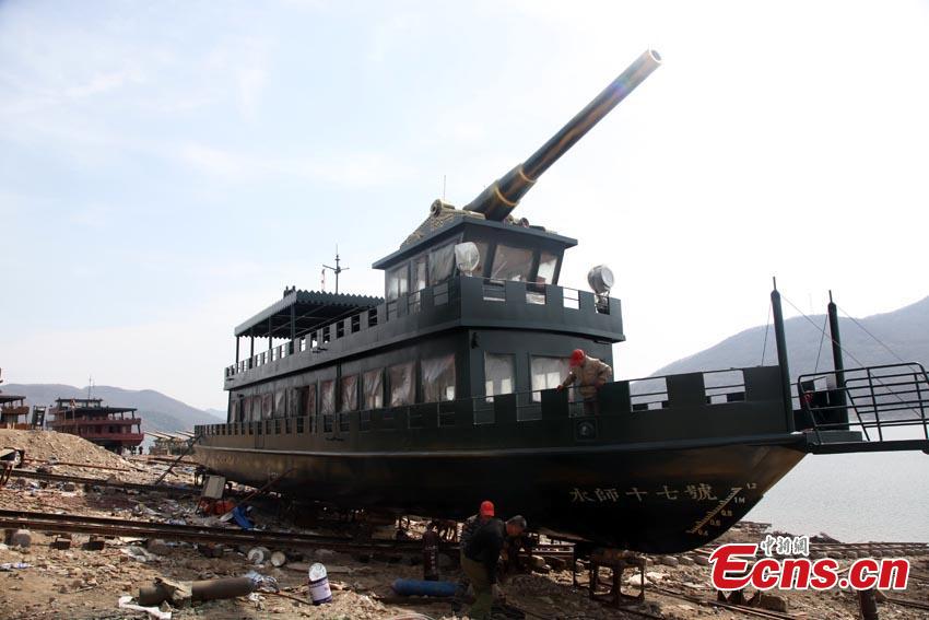 A replica of a warship from the reign of Emperor Kangxi in the Qing Dynasty (1644-1911) is under construction at Songhua Lake in Jilin city, Northeast China’s Jilin province. Six warships have been launched, with more to be completed. The city has been a base for shipbuilding since as early as the Ming Dynasty (1368-1644). (Photo: China News Service/Cang Yan)