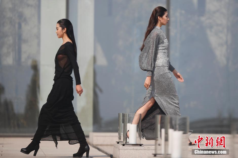Models present creations of Taiwan designer Gioia Pan in an outdoor show of the 2015 Qingdao Fashion Week on April 26, 2015. (Chinanews/Sheng Jiapeng)